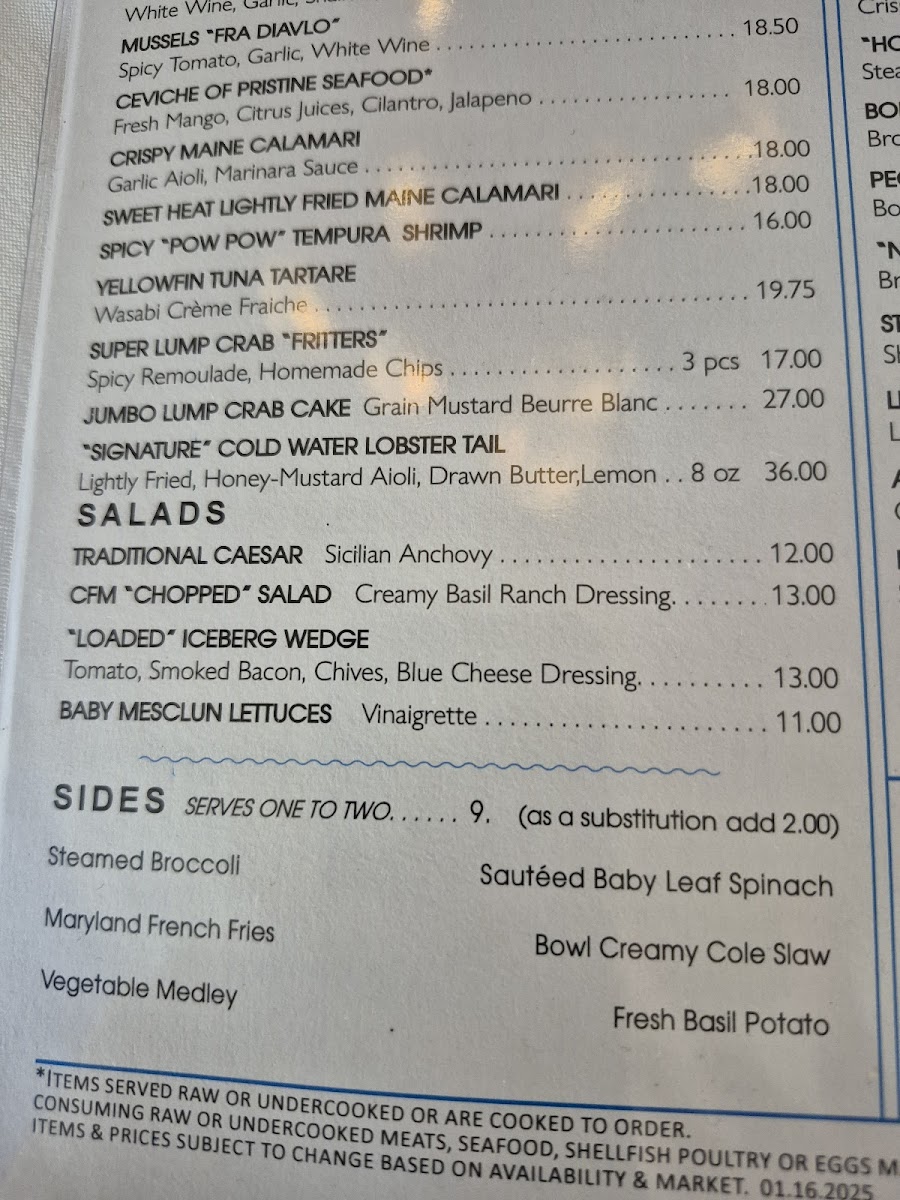 If you’re not just there for the seafood, there's also a selection of sides that can elevate your meal, including Maryland French Fries and a scrumptious Fresh Basil Potato Cake that promises to round off your dining experience beautifully.
